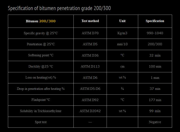 Specification of Bitumen 200/300